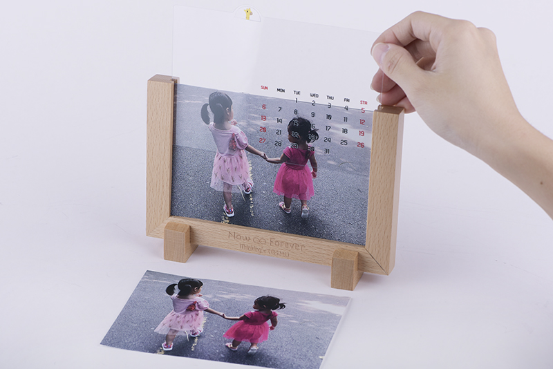 Now & Forever 規劃了7張與照片大小相同的透明月曆片,借由抽換顯示當月日數與星期的對應的透明月曆片,覆置於相片前,達到有自己選定照片為背景的萬年曆功能。.jpg?1631241096259)