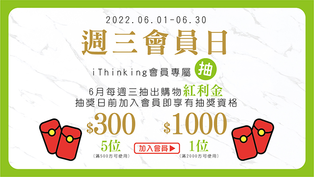 iThinking會員日會員抽好禮-千元紅利金送給您
