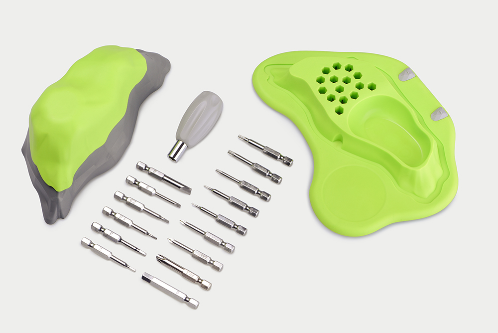 When you open up the mountain top, it also has 15 screwdriver bits of different specifications. The screwdriver bits are magnetic and can be used right after you attach them to the handle. When not used, the bits can be put in the magnetic mountain area to reduce the chance of loss!