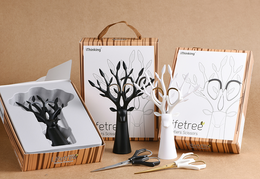 Take out the antler scissors, put your fingers in the grips of the scissors, and you can use it.