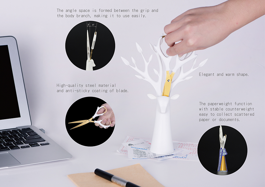 It is mainly composed of long, straight, conical and geometrical staggered shapes. With the branches of an antler-shaped tree growing up, it turns into an antlers-shaped branch. The images of horns, branches, and grips are staggered. It is a metaphor for the mysteries of life in nature, an elegant and fresh standing at the desk, a moment of tranquillity to get rid of annoying and troublesome affairs; the angle-shaped pull-up is the self-made scissors grip, decisively trimming the chaotic thoughts, continue to start!