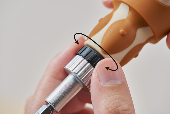 After adjusting the rotation direction of the ratchet (three-way, forward / fixed / reverse), you can easily tighten or loosen the screw by turning your wrist back and forth during use.