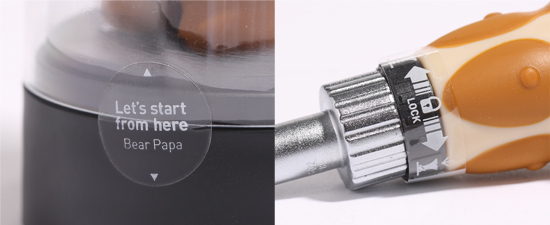 The bear's body can be divided into three parts, the head is a grip with a ratchet device,
