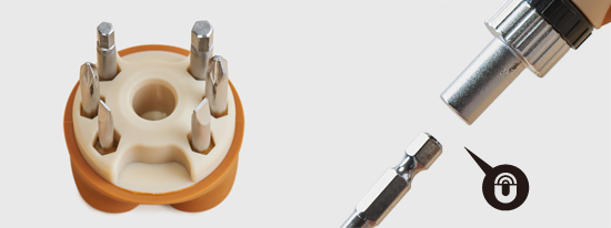 - Attach the screwdriver to the magnetic handle.