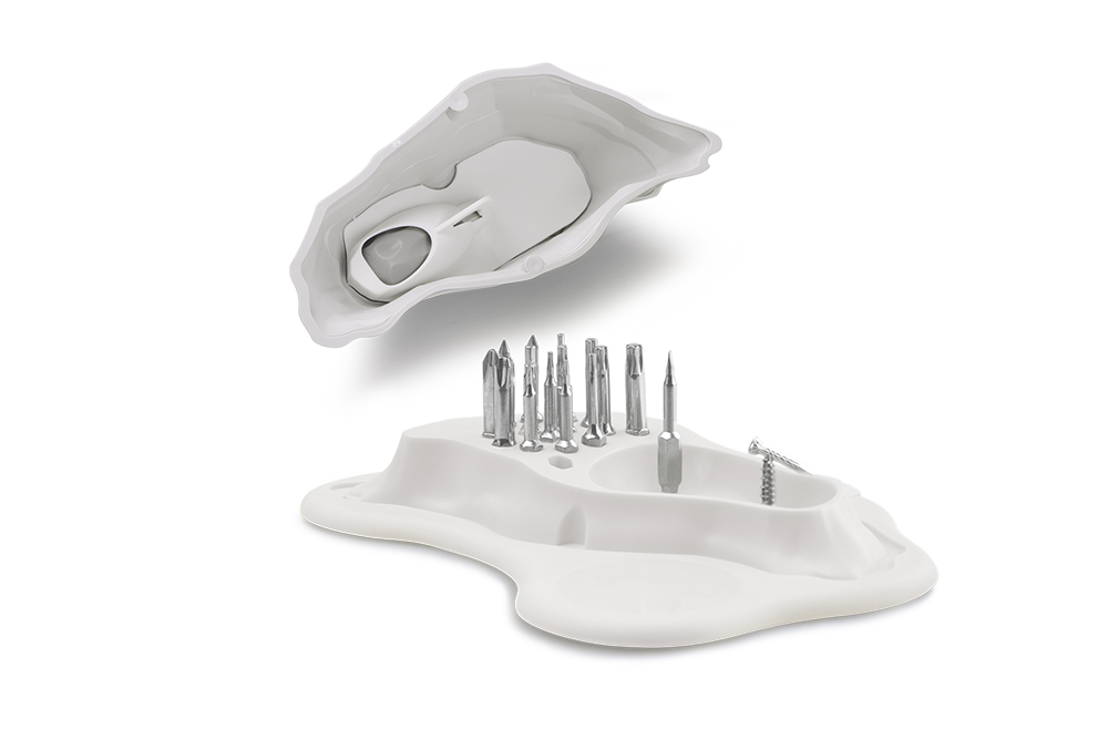 When you open up the mountain top, it also has 15 screwdriver bits of different specifications. The screwdriver bits are magnetic and can be used right after you attach them to the handle. When not used, the bits can be put in the magnetic mountain area to reduce the chance of loss!