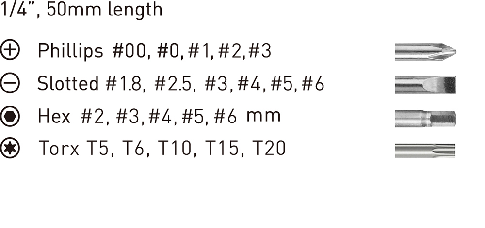 1/4", 50mm long screwdriver bit