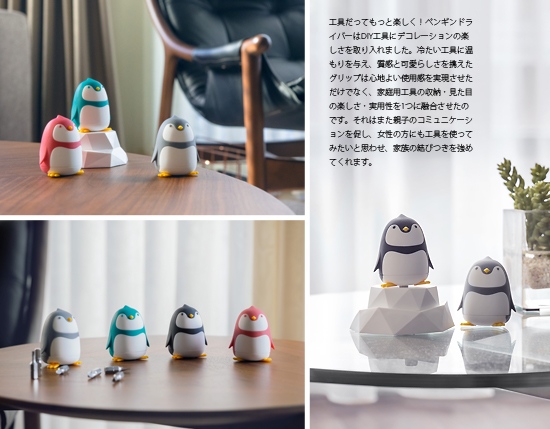 The penguin screwdriver integrates DIY tools into the decorative aesthetics, giving the cold tools a warm element. Its texture and cute grip not only improve the comfort of operation, but also combine the storage, beauty and practicality of household tools. At the same time, it can enhance the interaction between parents and children during the repair, increase the willingness of women to use tools, and condense the family's emotions.