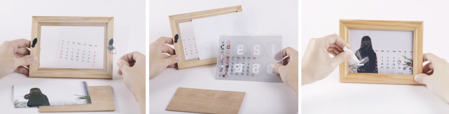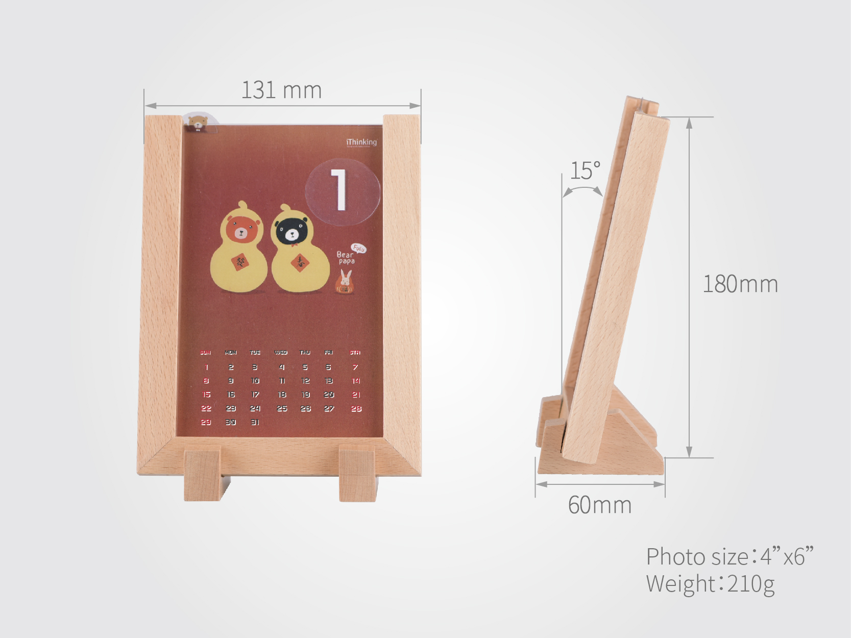 ◆ In order to maintain the fresh and clear vision of the perpetual calendar of the overall photo frame, a dual-level design is especially adopted in the bottom slot of the photo frame, so that temporarily unused transparent calendars and static stickers are obediently hidden behind.