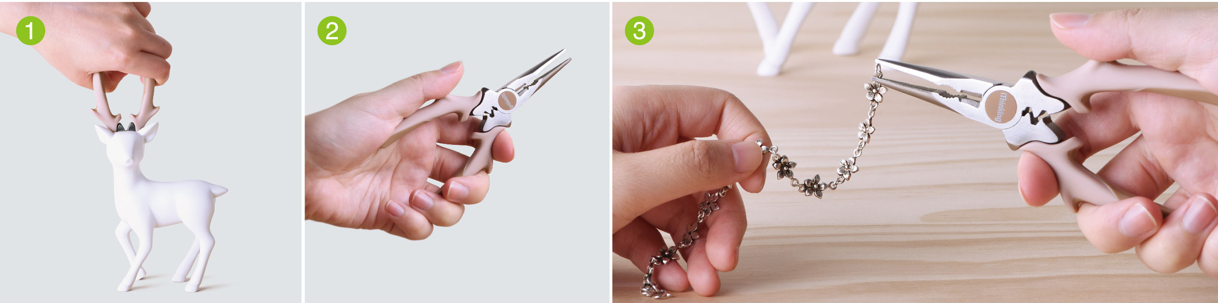 立鹿搭配尖嘴/斜口鉗,握把根據鹿身黑或白分別有不同配色,