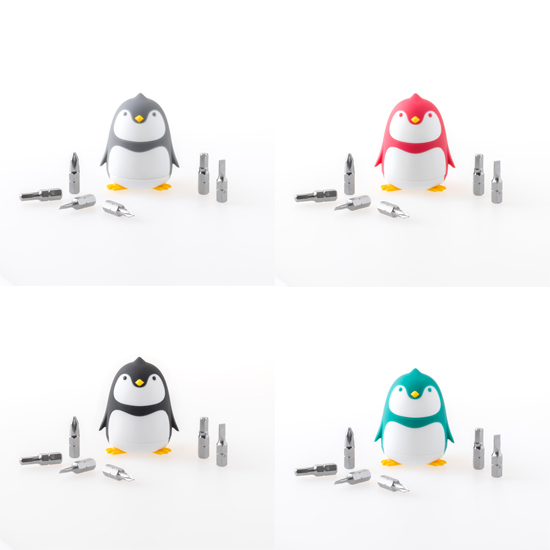 顧家的企鵝有圓滾滾肚子、翹嘟嘟的屁股、帥氣的一搓頭頂毛,搭配一雙期盼的眼神,溫暖俏皮的外型成為家庭裡最實用且美觀的生活用品。企鵝本身是一個具磁力的握把,身體內可容置6支不同規格尺寸的常用起子頭(一字/十字/六角大小各2支)。