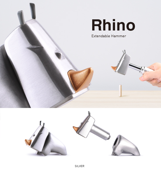 使用時將犀牛頭部拔出,隱藏式握把延伸的設計更符合人因操作,解決生活上需要用到鎚子的小差事。